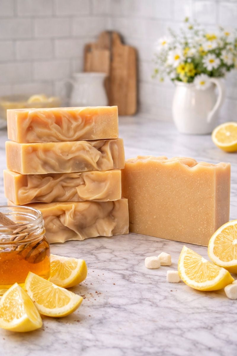 Glow starts here! Our Lemon & Honey soap blends the uplifting scent of fresh lemon with the soothing sweetness of honey, creating a bar that feels like sunshine in your hands. Creamy coconut milk adds a luxurious lather while nourishing and softening the skin, making this soap a gentle treat for all skin types.