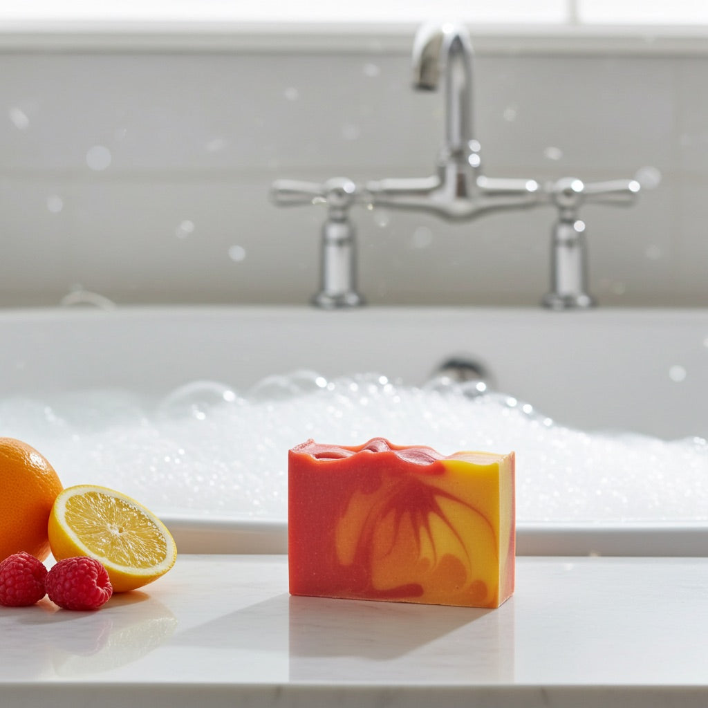 Get swept away in the fiery spirit of the tropics with our Island Volcano soap—a bold, energizing blend that brings the heat of an island sunrise and the freshness of ocean air. Bursting with notes of sweet orange, tangy lemon, and a splash of raspberry, this bar is a tropical escape in every wash.