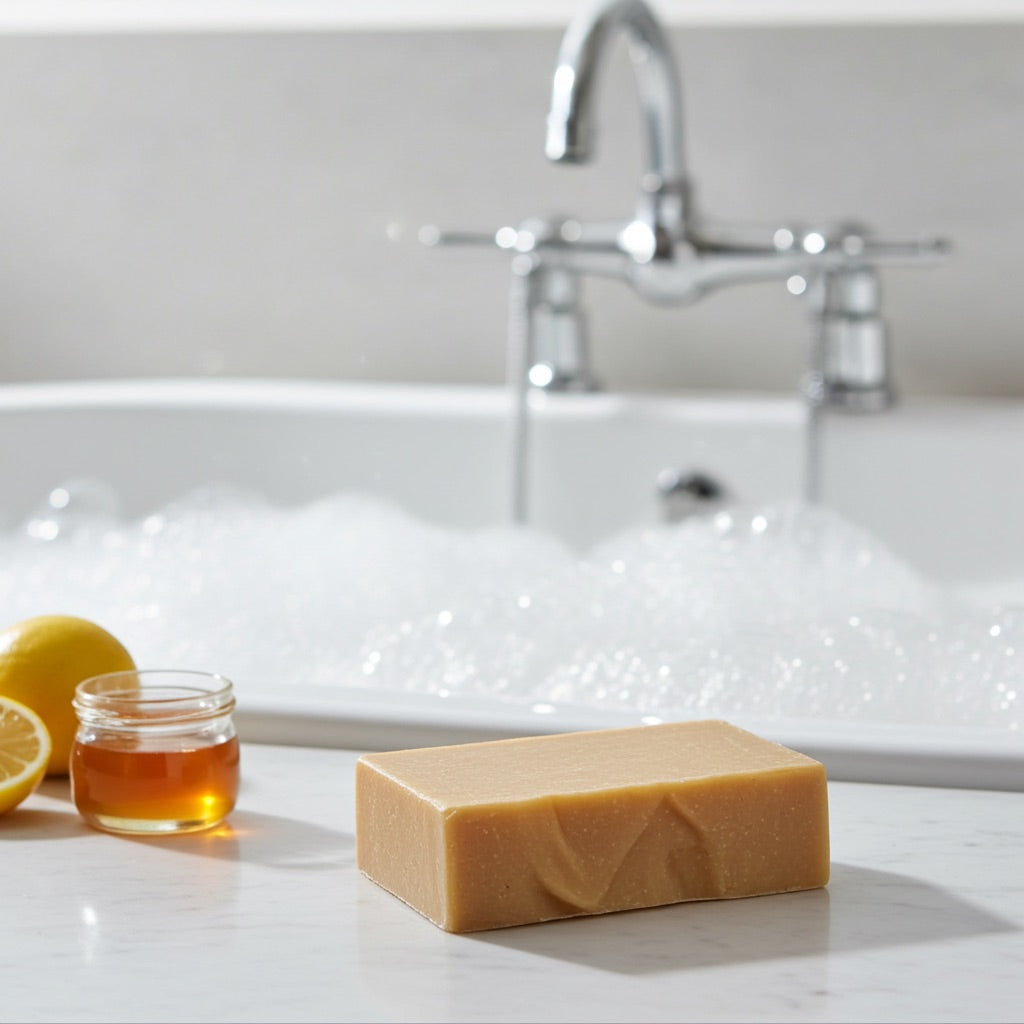Glow starts here! Our Lemon & Honey soap blends the uplifting scent of fresh lemon with the soothing sweetness of honey, creating a bar that feels like sunshine in your hands. Creamy coconut milk adds a luxurious lather while nourishing and softening the skin, making this soap a gentle treat for all skin types.